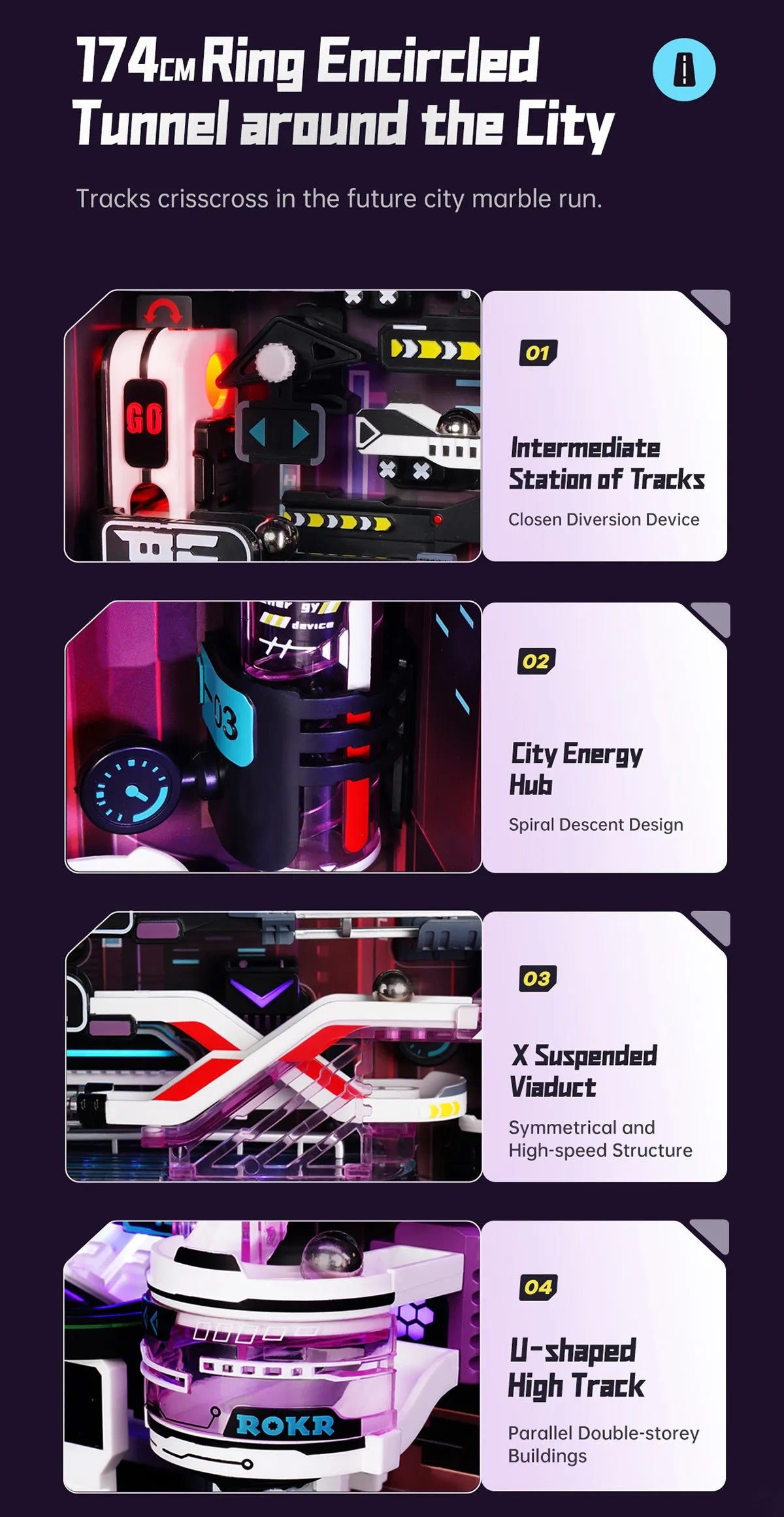 Enjoy dynamic, high-speed action with the Future City Marble Run! This futuristic DIY kit combines hands-on building with endless entertainment, all in one mechanical 3D puzzle set.